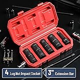 Bates- Lug Nut Impact Socket Set, 5 pcs, Lug Nut Socket Set 1/2 Drive, 21mm Lug Nut Socket, Lugnut Impact Socket Set, Lug Nut Sockets, 22mm Lug Nut Socket Set 1/2 Impact, Wheel Lug Nuts Socket