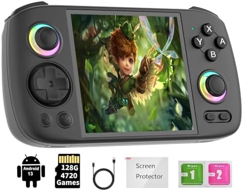 - 【Anbernic RG Cube Handheld Game Console】The Latest Android 13 System handheld game console . Built-in 128G SD Card 4720 Games , Support more than 20 formats of games. Support users to download games in relevant formats . It is not only a game console , but also a multi-function entertainment device. You can listen to the music,watch TV and go shopping, socialize and so on.
