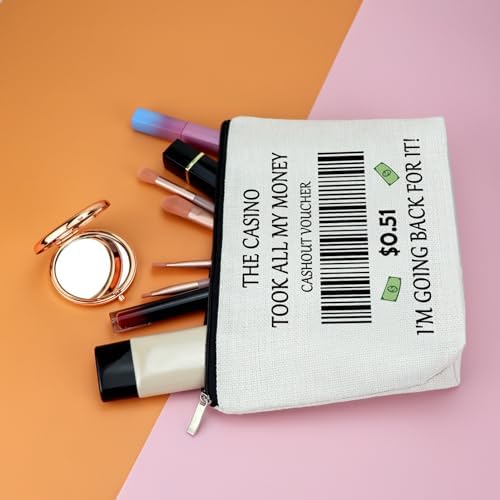 - Casino Lover Gift:This travel cosmetic bag is printed with interesting words-- “THE CASINO TOOK ALL MY MONEY CASHOUT VOUCHER I'M GOING BACK FOR IT!”. This makeup bag is a perfect gift for any casino lover, game player, slot machine enthusiast, table game fan, and anyone who likes gambling.