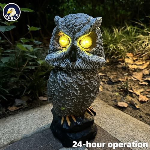 - Motion Activated, Bright Eyes, Rotating Head and Sounds - The smart owl has a built-in sensor in its head. The owl can detect objectives moving around it, and response with a pair of bright eyes, a rotating head, and realistic hoots. The owl will keep your garden safe, and get it filled with vitality.