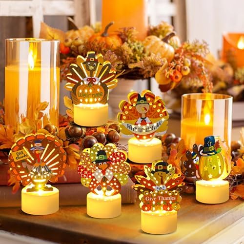 - 【Battery Operated, Safe for Everyone】The flameless Thanksgiving candles are powered by 3 AG10 batteries (included and replaceable), just flip the switch on the bottom of the Thanksgiving tea lights candles and then you can enjoy fun Thanksgiving decorations for home. No fire, no smoke, and not easy to fade or break, so families with pets or children can use these turkey LED candles with confidence.