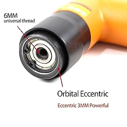 ▲【Professional orbital sander kit】:High stability, low vibration rate and low energy consumption, 22000Rpm; Air consumption: 4 CFM; Working pressure: 6-8KG; Net weight: 1.68 lbs. ▲Mini pistol Eccentric sander with 1" (25mm) ,2" (50mm) and 3" (75mm) Velcro Backing pad. Small Size, Light Weight, Low vibration, Easy to take grip operation. Ideal for limited space applications. ▲【Speed Control Switch】: With speed control switch, you can adjust the grinding speed as you like. ▲【Application】: This is a disc sandpaper machine suitable for point grinding, light polishing and fine polishing. Ideal for spot sanding focus areas, removing solder joints and rust spots on metal products, deburring furniture, and woodwork, mold manufacturing, polishing automotive and detailing work, etc. Versatile tool for precision work: This mini air polishing machine is perfect for point grinding, light polishing, and fine polishing, making it an essential tool for various tasks such as spot sanding focus areas and removing solder joints and rust spots on metal products.