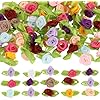 100 Pcs Mini Flowers for Crafts Multicolor Mini Roses Satin Roses with Green Leaves Small Satin Roses Tiny Artificial Fabric Flower Ornament Applique for Wedding Bride Sewing Wrapping DIY Wreath Decor