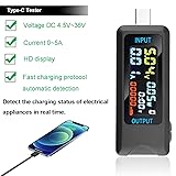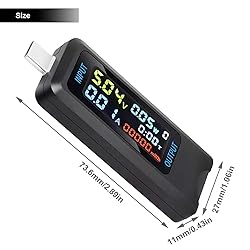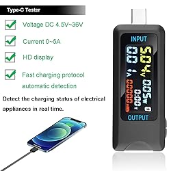 What it does: Type-C Multi-function Tester supports fast identification of multiple parameters such as current, voltage, power, charge, capacity, resistance, timing, number of capacity groups, Celsius, Fahrenheit and so on. Real-time detection: It can detect the charging status of electrical appliances in real time and monitor charging voltage and current and other parameter information at a glance. Type-C interface exclusive: Use this Type-C Voltage Current Meter at home, office, while traveling, in school.It is perfect for any situation whereType-C devices are used, such as computers, car and more. Multi-function button operation instructions: 1.Switch the screen;2.Quickly triple-click the switch button to reset the power to zero (mWh) and reset the timing to zero the current group (0.00);3.Long press the on/off button for 2 seconds to change the accumulated data storage group number (NO.X). Test various digital devices: Easily test various chargers, data cables, power banks, notebooks, mobile phones, Type-C digital devices, etc.