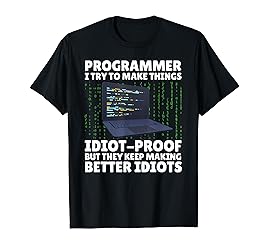 Do you love to write codes? Best gift idea with a quote "Programmer I try to make things idiot-proof but they keep making better idiots" for programmers and software developers. Cute present for computer lovers and fans who loves to use HTML and JavaScript Lightweight, Classic fit, Double-needle sleeve and bottom hem
