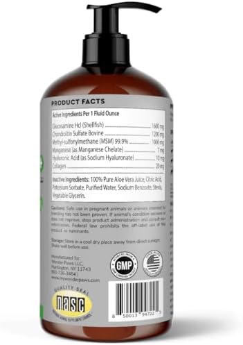 WONDER PAWS Premium Liquid Glucosamine for Dogs Strength Joint Support, Flexibility, Cartilage & Mobility - Hip and Joint Supplement with Chondroitin, MSM, Collagen & Hyaluronic Acid (32 Oz)