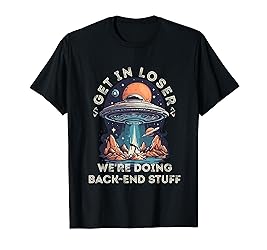 - Ideal for software engineers, web developers, and coding enthusiasts. Featuring a humorous alien abduction design with "Get in Loser, We're Doing Back-End Stuff". Perfect for those who love programming, coding, and back-end development. Funny and unique graphic design for programmers specializing in server-side coding, databases, and APIs. A playful nod to the tech community, sure to be a hit at hackathons, tech meetups, or just casual coding sessions. This Alien Abduction Funny "Get in Loser" Back-End Developer item is designed by Funny Back-end Programmers Outfits.