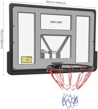 44'' Basketball Backboard and Rim Combo, Wall Mounted Basketball Hoops PET Shatter Proof Backboard and Rim, School Competition Durable Hanging Basket Ball Hoop Goal Rack for Indoor Outdoor Use