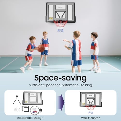 - EASY TO INSTALL: The basketball hoop features a simple structure and classic design making the wall mounted basketball hooks easy to install. You can finish the installation independently by yourself. And with the complete accessories, you don't need to buy extra tools. The wall-mounted and detachable design saves you a lot of space and gives you enough room for systematic soccer training.