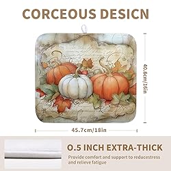 - ★ General InformationSize: 16x18 InchPattern: Fall and Thanksgiving ThemedPackage Included: Pack of 1 fall drying mat for kitchen counter★ Advantage① Microfiber and composite sponge absorb dish water quickly.② Hanging loop design to hang up mat to dry fast.③ Protect bowls, glassware and countertop from being scratched or damaged.④ Protect your counter top from scratches and scuffs.⑤ Foldable for easy storage when not in use.⑥ Thick enough to reduce noise.★ Lovely Home GiftsThe Thanksgiving dishes drying mat adopts high-definition printing technology, with clear patterns and bright colors; The rustic vintage style dry dish mats are decorated with pumpkins and maple leaves, full of autumn atmosphere. The sink drying mat will bring unique seasonal surprises to your family and friends.★ Wash InstructionMachine or dishwasher washable.Do not bleach and tumble dry.Wash with like colors.