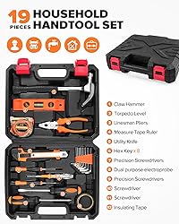 - 19pcs Household DIY Tool Set - Basic Tools for Home, Office, Dorm | General Hand Kit with Storage Case