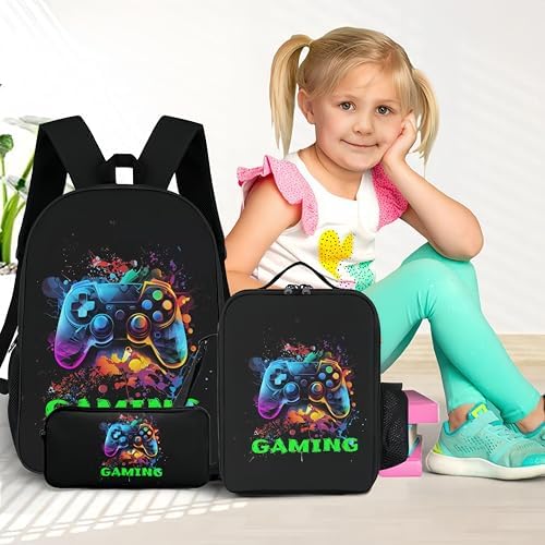 3-Pcs Backpack School Bag Set For Boys And Girls Travel Study Backpack And Lunch Box And Pencil Bag (Game Backpack)