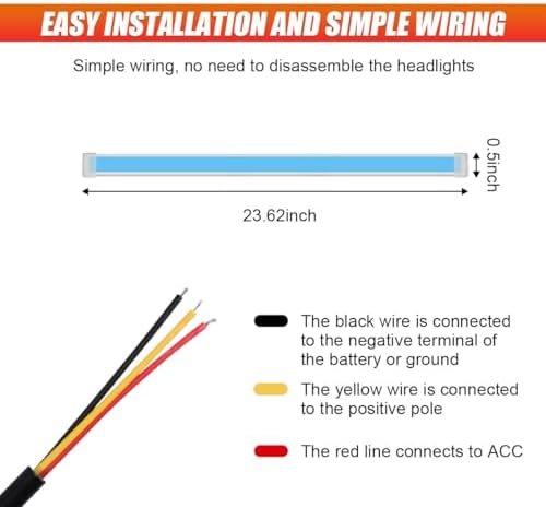 - 【Easy to Install】:This car led strip light has a strong adhesive on the back, and installation only requires splicing it into the current daytime running light and turn signal light wiring, which can be easily completed in a few minutes. No need to disassemble the car's headlights or use other tools.