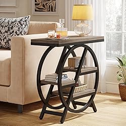 Sufficient Storage Capacity: The end table offers 4 tiers for high capacity storage needs. The open design of this slim, narrow side table makes it convenient for storing personal photo albums, books, and other decorative items, providing extra storage capacity for the living room Sturdy Side Table: With a reliable and durable metal frame, the slim side table holds a large weight. The round frame does not deform after a long time of use. Adjustable feet keep the wood end table stable on uneven surfaces and foot pads prevent scratching the floor Modern Space-Saving Table: The brown sofa table measures 25.59" W x 11.81" D x 26.18" H, and each shelf has a load capacity of 45 lb. The storage end table is usually placed next to the couch, in a home office, in the bedroom, and is used to place small items. It is beautifully designed and can also be used as a piece of decorative furniture Rustic Design: A black metal frame and vintage shelf boards make up the modern design. This skinny table for office matches your furniture perfectly, balancing aesthetics and pragmatism Easy to Install and Clean: It comes with clear, accurate, and detailed instructions. Just follow the instructions step by step to install. The tools used in the installation are also included. With two people, the sofa side table will be installed in 20 minutes