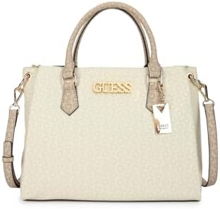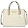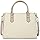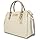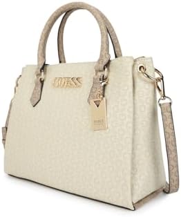 Faux-leather satchel Embossed logo pattern Pale gold-tone hardware with front logo emblem Organized interior with lining