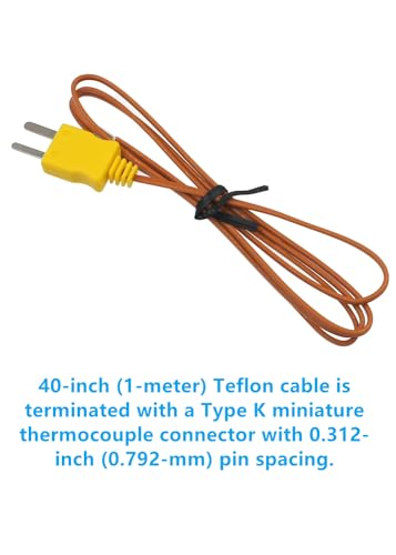 - 40-inch (1-meter) Teflon cable is terminated with a Type K miniature thermocouple connector with 0.312-inch (0.792-mm) pin spacing.