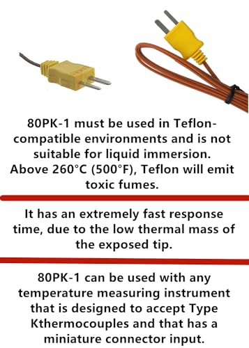 - 80PK-1 must be used in Teflon-compatible environments and is not suitable for liquid immersion. Above 260°C (500°F), Teflon will emit toxic fumes.