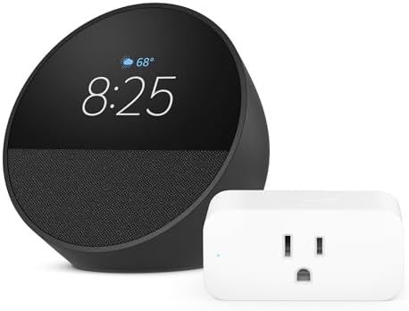 Amazon Echo Spot (2024 release) in Amazon Black bundle with Amazon Smart Plug