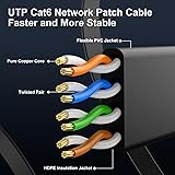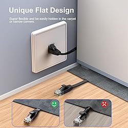 Wide Compatibility: CableGeeker Cat6 Ethernet cable connects all Gigabit LAN devices—PCs, servers, printers, routers, and more. Supports Gigabit 1000 BASE-T, 100 BASE-T, and 10 BASE-T, meeting Category 6 standards (TIA/EIA 568-C.2) High-Speed Performance: Experience lightning-fast data transfers with up to 500 MHz bandwidth and 10 Gbps speed, ideal for server applications, cloud storage, HD video streaming, and gaming Space-Saving Flat Design: Flat Cat6 network cable is designed to prevent tangles and save space. It's highly flexible, making it easy to run under carpets, around doors, rotating arms, or drawers Premium Quality Construction: Made from 100% bare copper wire, UTP Ethernet cable features RJ45 connectors with gold-plated contacts, molded strain-relief boots, and a snag-less design to ensure secure connections and minimize signal interference Professionally Network Tested: Cat6 Ethernet cables are professionally network tested to ensure performance and durability, reducing the need for frequent replacement and providing long-term reliability Multi-Pack Convenience: Available in various pack sizes to meet all your wiring needs. Ideal for network expansions, connecting multiple devices, and handling complex installations in both home and office settings