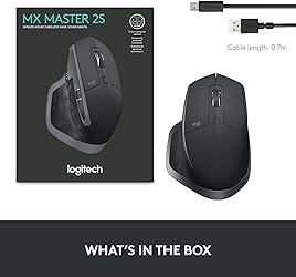 Logitech MX Master 2S Bluetooth Edition Wireless Mouse – Use on Any Surface, Hyper-Fast Scrolling, Ergonomic, Rechargeable, Control Up to 3 Apple Mac and Windows Computers - Graphite (Renewed)