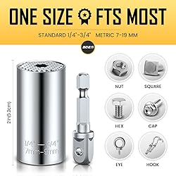 BOEN Super Universal Socket Tool Set Gifts for Men | Self-adjusting Fits (7mm-19mm) with Power Drill Adapter | Christmas Fathers Day Ideal Gift Stocking Stuffers for Dad, Husband, Handyman, Boyfriend