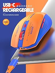 UNIQUE ANIME-STYLE DESIGN - Experience the striking orange and blue combination that will captivate your senses. Meticulously crafted with precision, this wireless mouse is a visual delight and makes for the perfect gift choice. SEAMLESS CONTROL OF 3 DEVICES - Effortlessly switch between three devices with our dual Bluetooth 5.1 modes and wireless 2.4G technology. A simple click of the mode switch button located at the bottom of the mouse allows you to transition from desktop to tablet, laptop to Macbook, iPad, and more. The green, blue, and red indication lights represent BT1, BT2, and 2.4G USB respectively, ensuring easy and convenient device connectivity. RECHARGEABLE & AUTO SLEEP FUNCTION - No more battery replacements with our convenient USB to Type-C cable charging. Fast and stable charging ensures you are always powered up. After 1.5 minutes of inactivity, the mouse automatically enters sleep mode to conserve power. A simple click of any button or movement of the mouse wakes it up instantly. SILENT CLICK & HIGH RESPONSIVENESS - Enjoy a noiseless working environment with our mouse that reduces noise by up to 90%. With 3 adjustable DPI settings (800, 1200, and 1600), enjoy precise and sensitive cursor movement for enhanced productivity. COMFORTABLE & DURABLE DESIGN - Designed for ergonomic comfort, this mouse features an elegant profile that fits perfectly in your hand. With 6 buttons, including 2 convenient forward and backward buttons on the left side, it caters to both work and gaming needs. Tested for durability with over 5 million clicks, this mouse ensures long-term stability.