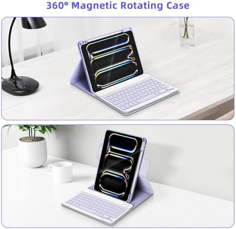 GOOJODOQ for iPad Pro 11 Inch Case with Keyboard (M4, 2024),360 Rotating Case and Magnetic Detachable Keyboard with Pencil Holder,Portrait/Landscape Modes,Auto Sleep/Wake for 11" iPad Pro 2024-Purple