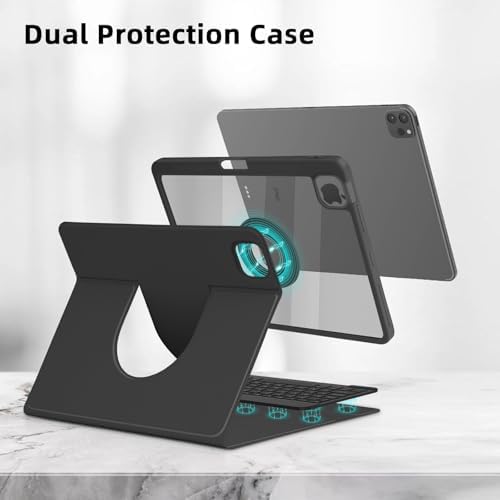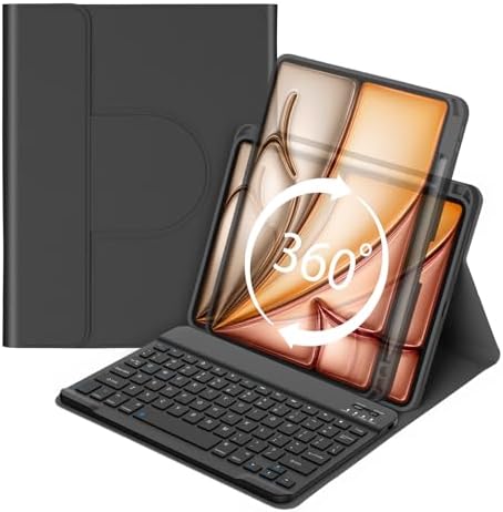 GOOJODOQ Keyboard Case for iPad Air 11 inch 2024 M2 & iPad Pro 11" 4/3/2/1,iPad Air 5th/4th 10.9" Case with Keyboard,360 Rotating Case and Magnetic Detachable Keyboard Portrait/Landscape Modes-Black