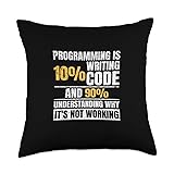 Programming Is 10% Percent Writing Code Funny Programmer Throw Pillow