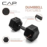 - The CAP Coated Hex Dumbbell Weight Pair with Black Handle, New Edition has been updated with robust packaging to ensure your dumbbell gets to you in great condition! Our dumbbell ends are made from ASTM A48 Class 20 grey iron with a durable coating and joined together by handle finished in a durable black coating, providing a strong, durable product that will last for years to come. Dumbbells are used to target all major muscle groups, including arms, chest, back, abs, legs and core – so they are essential for any home gym! The CAP Coated Hex Dumbbell Weight Pair offers many benefits when incorporated in exercise routines, which includes muscle building, improving core strength, boosting balance, providing better bone health, burning calories, increasing energy levels, enhancing overall mood and more. Use your CAP Coated Hex Dumbbell for essentially any exercise routine such as isolations, full body, functional, conditional, strength training, and HIIT workouts. Includes 30-day manufacturer warranty. **This item will be delivered in two separate boxes, which may arrive on different days or at different times.
