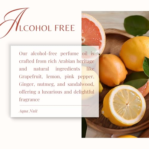 • Alcohol-Free and Long Lasting Perfume: Designed for all-day freshness, Aqua Nuit alcohol free perfume is a premium arabian perfume oil that delivers a lasting scent, perfect for lovers of oil perfume for women long lasting and those who value high-quality natural perfume.
