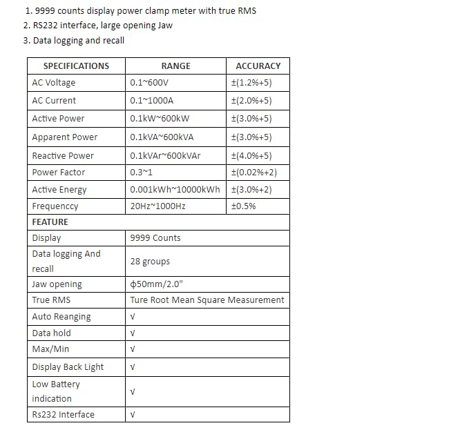 - Digital ClampMeter MS2203 3-Phase Digital Multimeter PowerFactor ClampMeter