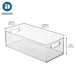 SMART STORAGE - The iDesign Linus Storage Bin features an open-top design for easy accessibility, and its clear construction offers unobstructed views of food items, making it easy to grab snacks, boxed foods, and more STACKABLE - Raised feet allow bins to stack neatly while conserving space; Two comfortable carry handles facilitate easy transport around the kitchen; Bins also fit neatly inside deep kitchen drawers to organize dish towels, small gadgets, and more EASY ORGANIZATION - This smart storage solution suits all your storage needs and streamlines other areas of the home, from craft corners to home offices, or anywhere you need to keep things organized QUALITY CONSTRUCTION - Made of BPA-free plastic that is shatter-resistant; Food safe; EASY CARE - Clean with mild soap and water; Do not place in the dishwasher MADE TO FIT - Storage bin measures 15.95" x 8.07" x 5" high / 40,5 cm x 20,5 cm x 12,7 cm