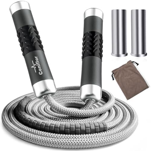 • 【Heavy Ropes, Better Results】 Each rope weights about 0.85LB with handles. Weighted Jump Rope features built-in high-quality ball bearings to ensure smooth, tangle-free motion. Using a weighted jump rope effectively enhances strength and accelerates full-body calorie burning, with 5 minutes of use equivalent to 15 minutes with a regular rope. Challenge yourself to a higher level and achieve your training goals