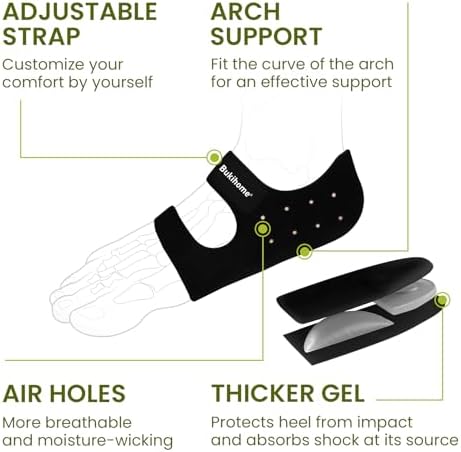 - UPGRAGE DESIGN - The upgraded heel protector with "air holes" is more breathable and moisture-wicking, keeping your feet nice and comfort. Made of skin-friendly fabric providing better fit, Bukihome plantar fasciitis heel cups not easily wear down and it can take the impact off the area, providing persistent cushioning and support.