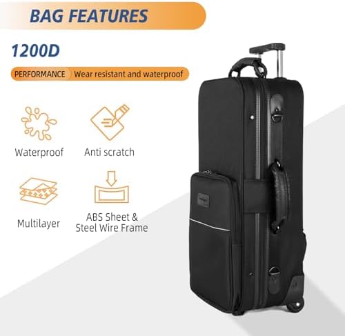 - Premium Material: Our Alto Saxophone Case Roller bag / Backpack is crafted from imported Taiwan 1200D nylon fabric, ensuring waterproof and abrasion resistance. The top cover features memory foam, protecting your instrument from scratches and maintains its shape beautifully. The interior is delicately lined with high-quality plush to prevent any damage to your saxophone.