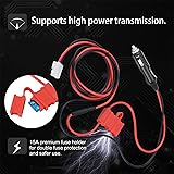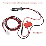 [ENHANCED POWER TRANSMISSION] The 12V DC Power Cord Cable ensures efficient and seamless power transfer for your mobile radio, making it an essential accessory for any vehicle equipped with a 12V outlet socket. [DUAL FUSE PROTECTION] This power cord features a 15A premium fuse holder, providing double safety for your devices with robust fuse protection, ideal for various 12 volt adapter plug applications, including CB radio accessories. [EXTENDED CABLE LENGTH] With a generous 1.5m power cable, this mobile charging cable gives you the flexibility needed for all your charging requirements, whether connected to a car radio charger or used with HF radio transceivers. [VEHICLE CIGARETTE LIGHTER COMPATIBLE] Effortlessly connect your mobile radio to your car's cigarette lighter, offering convenient on-the-go charging for audio and video power cables, making it a must-have for all mobile radio enthusiasts. [HIGH TEMPERATURE RESISTANT MATERIAL] Designed with high-quality materials, the T Shape Connector and cigarette lighter plug offer excellent heat resistance and insulation properties, ensuring durability during use in truck bed power outlet kits.
