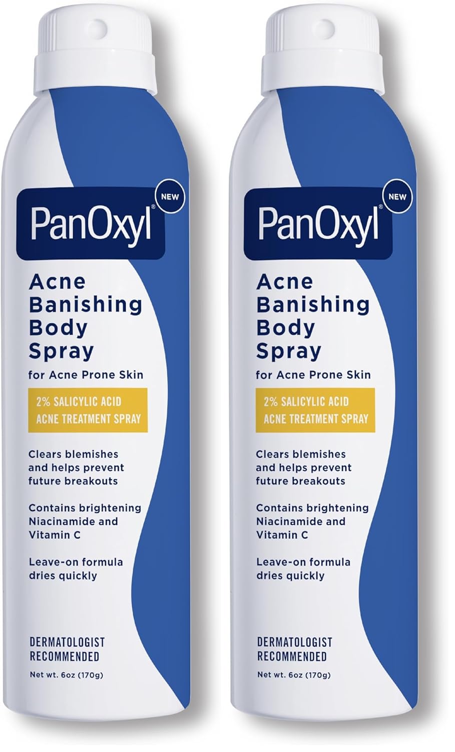 Get clearer skin all over with PanOxyl Acne Banishing Body Spray. Formulated with 2% Salicylic Acid, it unclogs pores, clears blemishes, and helps prevent future breakouts. Plus, the formula contains skin-brightening Niacinamide and Vitamin C as well as soothing Witch Hazel and Aloe. The bottle’s 360-degree spray nozzle allows you to rotate it in any direction and achieve all-over coverage. The innovative design makes those hard-to-reach areas like the lower back no problem. The spray is super easy to use; just spray and go! The leave-on formula dries quickly so that you can get on with your day. PanOxyl is the Acne Authority. We’re the makers of the number one best-selling acne wash in the U.S.* (*data on file). Directions for Use: Clean skin thoroughly before applying; Cover the entire affected area with a thin layer one to three times daily; Because excessive drying of the skin may occur, start with one application daily, then gradually increase to two or three times daily if needed or as directed by a doctor; If bothersome dryness or peeling occurs, reduce application to once a day or every other day. Our products use high-quality, scientifically proven ingredients to banish breakouts without a prescription. PanOxyl Acne Banishing Body Spray will help your skin look its best so you can be your clearest, most confident you. Clearer skin is in your future!
