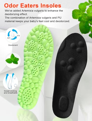 - 【Shock absorbing deodorizing cooling insoles】Soft kids insoles for sneakers,Reduce foot fatigue at any time and keep it firmly fixed in boots, sneakers and casual shoes, absorbs sweat and moisture and keeps your feet cool. Keeps your feet comfortable even in hot weather, Reduce stress and pain whether you are standing, playing sports or just going about your daily life. Perfect for walking, hiking, work shoes or boots