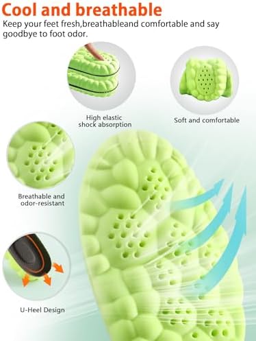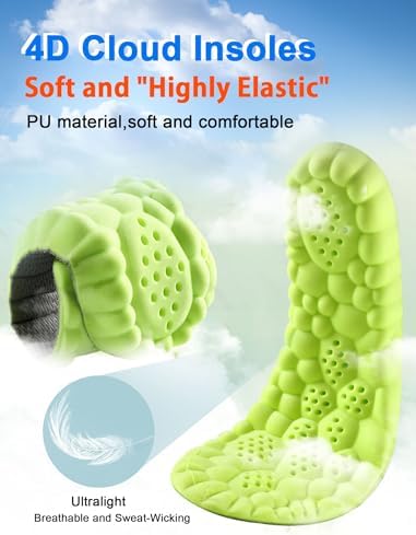 - 【4D Massage insole】 Small protrusion design on the surface of the insole, 4D massage cushion bump, relieves foot discomfort and fatigue. Improved walking comfort. The insole has 9 massage points, allowing you to easily enjoy a comfortable massage and relieve foot discomfort caused by long-term walking, Improved walking comfort