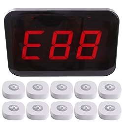 Long-Range Wireless Paging System: Features 433MHz wireless technology with a working range of up to 200 meters (656 feet) in open areas, providing reliable signal penetration through walls for multi-room environments. Versatile Display Receiver with Clear Alerts: Equipped with a large digital screen and 15 adjustable volume levels. Offers 8 selectable voice alert modes (e.g., "Room XXX Call," "Bed XXX Call," "Service") for customized notifications in various settings. 10 Durable & Waterproof Buttons, Highly Expandable: Includes 10 waterproof call buttons designed for long-term use. The system supports up to 999 buttons, allowing for easy business expansion. Buttons feature a detachable base for simple battery replacement (uses 23A 12V battery, ~1 year life). Dual Alert Notification: When a call button is pressed, it simultaneously alerts both the central display receiver and optional wristwatch receivers (watch sold separately), ensuring no call is missed and improving staff response time. Wide Application Across Industries: An ideal wireless paging solution for nursing homes, hospitals, clinics, restaurants, hotels, food trucks, church nurseries, and more. Enhances customer/patient experience while increasing staff efficiency and mobility.