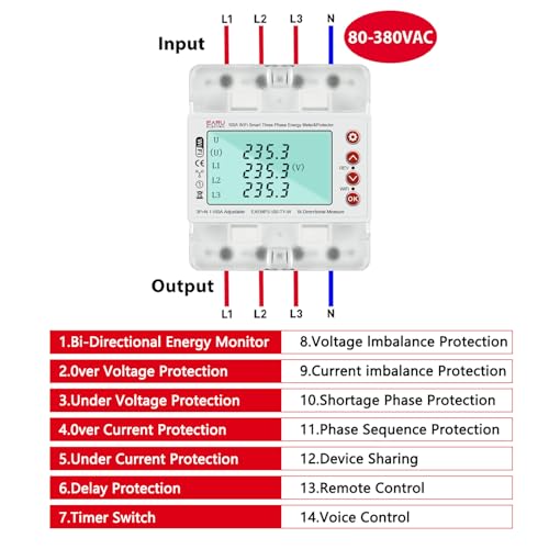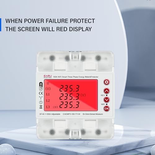 - ADVANCED METERING: 3 Phase 380V 100A Tuya WiFi smart bi-directional energy power kWh meter with over/under voltage protection and relay switch.