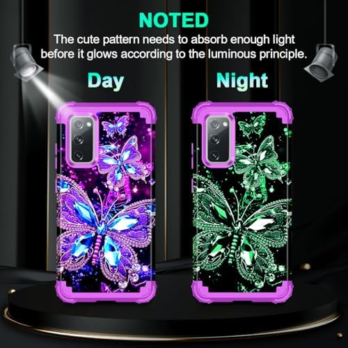 Miqala for Galaxy S20 FE 5G Case,Glow in The Dark Three Layer Heavy Duty Shockproof Protection Hard Plastic Bumper+Soft Silicone Protective Case for Samsung Galaxy S20 FE 5G,Dark Butterfly