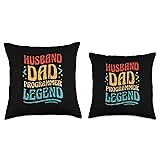Husband Dad Programmer Legend Funny Coder Black Vintage Throw Pillow