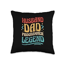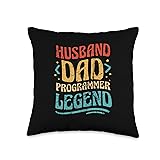 Husband Dad Programmer Legend Funny Coder Black Vintage Throw Pillow