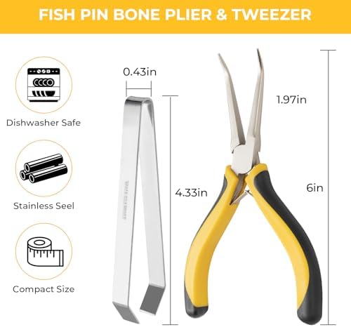 - Versatile Fish Cleaning: With these tools, you can clean bones from various fish such as Salmon, Sea Bass, Trout, Tuna, Cod, Mahi Mahi, Tilapia, Sole, Red Snapper, and many more.