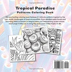 - Dive into a world of vibrant beauty with the "Tropical Paradise Pattern Coloring Book," a captivating addition to the "Joyful Tapestries" series. This enchanting coloring book features an array of intricate patterns inspired by the lush, exotic landscapes of tropical paradises. From detailed palm fronds and blooming hibiscus flowers to elegant birds and mesmerizing ocean waves, each page invites you to bring the vivid colors of the tropics to life. Perfect for all ages, this book offers a relaxing and creative escape, allowing you to immerse yourself in the serene and joyful essence of tropical bliss. Get your copy and unleash your artistic spirit and transform these stunning patterns into your personal masterpieces.