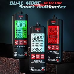 ♞ Multi-function: Digital multimeter has wide range of uses and accurate measurement, which can be used to measure AC/DC voltage, resistance, frequency, duty cycle, capacitance, temperature. ♞ 3 results display: 3 results display make it very easy to judge the detected voltage strength. ♞ Live/Neutral wire check: Secure and easy to distinguish the live/neutral wire by comparing the strength of the detected voltage, the wire that detect the stronger voltage signal is live wire. ♞ Voltage measurement: Insert red test probe into the socket jack, If the screen will display LIVE,the 110v signal indicator or the 220v signal indicator lights up and the buzzer sounds an alarm indicating that the line is a live wire. ♞ Bright LED flashlight: The flashlight allows you to test efficiently and comfortably, indoors or outdoors, day or night.