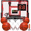 - 【Interactive Scoring & LED Lights】Transform your home into a basketball court with indoor basketball hoop, an electronic scoring system that tracks and cheers for every shot. Cool LED lights that illuminate your dunks. The one-touch mute feature ensures you can enjoy the passion of the game without disturbing others. Our pro hoop offers 3 modes, training, challenges, competitions. It's the perfect way to bring the thrill of basketball into your home, and mute function adds ease of use