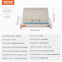 VEVOR Thermal Binding Machine, 500 Sheets Capacity Book Binding Machine, Thermal Book Binder 50mm Binding Thickness A3(Short Edge)/A4/A5 Document, with Infrared Optical Detection
